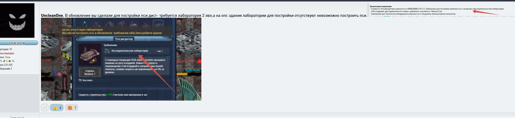 , В обновление вы сделали для постройки пси дист- требуется лаборатория 2 лвл,а на опс здания лаборатории для постройки отсутствуют невозможно построить пси.