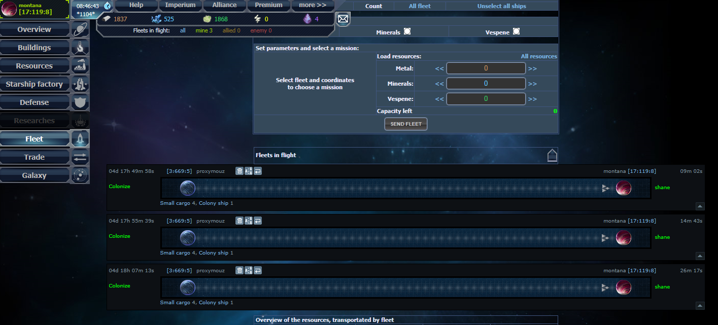 as Montana pirate is way too far for me to attack, I have decided to build a planet close to him to build a fleet in striking distance!