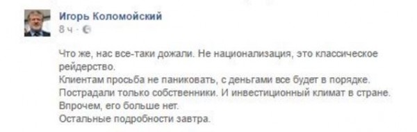 вывод - все будет хорошо. и Коломойский и Порошенко понимают друг друга, значит так надо.