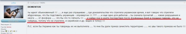 ты идиот обыкновенный !!! .....я еще раз спрашиваю ...где доказательства что стреляла украинская армия, я вот говорю что стреляли абдроченцы, что бы подставить украинцев - опровергни !!! ??? .....и еще одно для дебилов ...ты сначала прочитай ..... какие разрушения и ожоги .... от фосфора ..... что бы что то ляпнуть !!! ... и найди мне в инете последствия после фосфорных бомб в Украине (уверяю, что не найдёшь, потому что не стреляли, и сирийские и др. видио в топку) !!!
