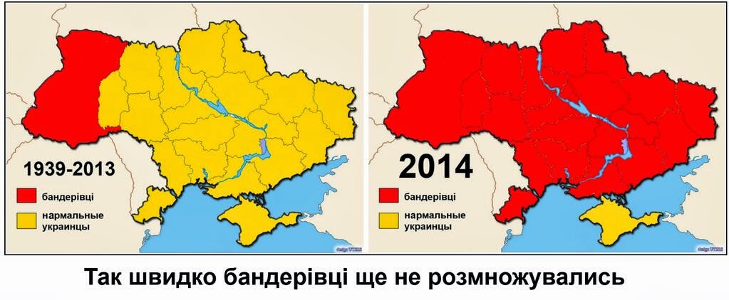 На карте 2014 года лишние часть Украины, где мо мнению РФ не бандеровцы.., но не хватает почти всего остального мира.. как минимум вся Европа,США,Канада...там тоже бандеровцы и фашисты. :)
