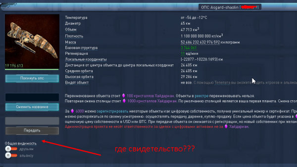 Описание: в свое время 2 своих ОПС я ввел в реестр, чтобы обезопасить от угона. Сегодня решил проверить реестр и неожиданно увидел, что мои активы (ОПС) из реестра пропали, решил проверить не купил ли кто их случайно и вдруг счастье, ОПС на месте, но у них пропали свидетельства цифровых активов. Прошу устранить данный баг и вернуть мои купленные официально через реестр свидетельства личной собственности.