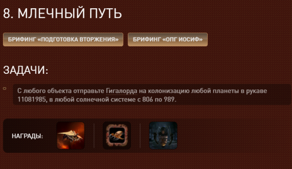 Закончил миссию 8 Млечный путь. В награду дали Левиафана, медальку Гигалорда и Мантрида.