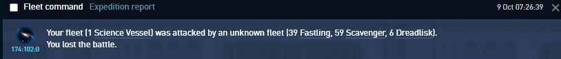 the outcome in combat reports states Defender(s) won the battle! in expedition reports it says you lost the battle, but you did not, it should instead say 'Your ship was lost on the expedition' or something to that effect....Unless you have won a prize.