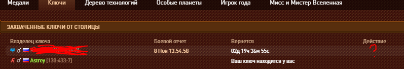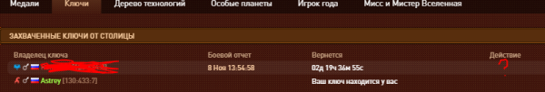 При захвате чужого ключа, из раздела "Ключи", можно было использовать "Действие" - "Посмотреть флоты". Сейчас это поле неактивно и такой возможности нет. Приходится переводиться на коры любого объекта, принаждлежащего игроку, у которого захватил ключ и только там появляется возможность воспользоваться чужим ключом. Скрин ниже. Просьба поправить.