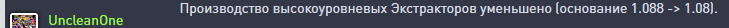 Выработка Экстрактора уменьшена на 25%.