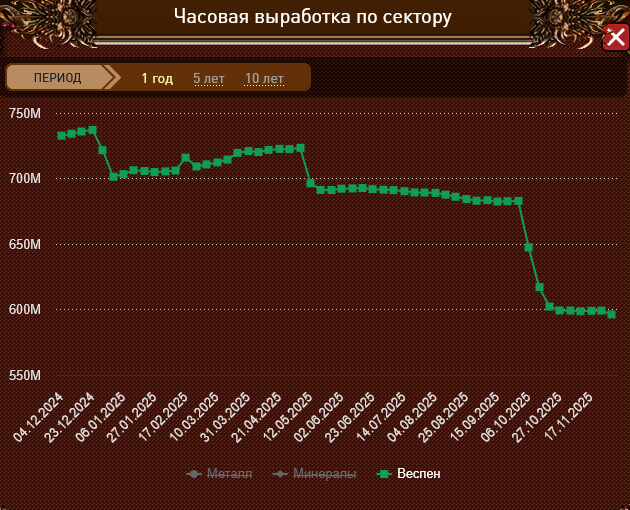 Не надо было водить туман и всякую чушь после этого .Весп бы не упал так. И пиров резать не надо было. Агра падала раньше каждый день сейчас раз в неделю. И если посмотреть то какая окупаемость шахт стало ур 26 1 год 211д . Истощение за это время сколько будет интересно