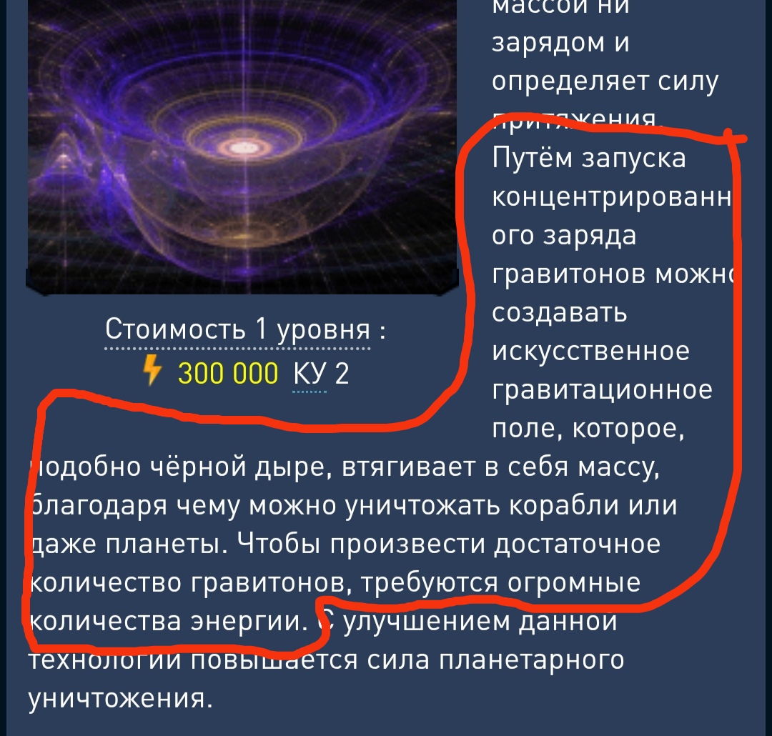 Yoshimitsuu, Технологии это знания, которые должны быть подкреплены материальной базой, ну знаеш ты как взорвать планету, это ж не значит что силой мысли она взорветься, нужно за счет знаний построить СЗ или СНЗ. Прилетаеш, становишся мисией уничтожение и тут тебе вырубили електричество. Силой мысли планета должна взорваться? Нету електричества, нету гравитационных выстрелов.