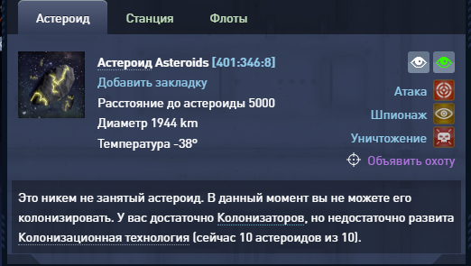 Описание: Не занятые астеры не могут быть уничтожены узурпаторами и лексами. Иконка уничтожения есть, отправить на уничтожение не дает. при этом на любые другие занятые игроками можно.