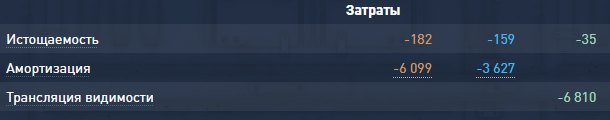 Общий расход на трансляцию видимости можно увидеть в меню «Сырьё»: