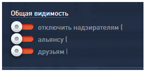 "включить видимость" (друзьям/соалам) и "отключить видимость" (надзирателям).