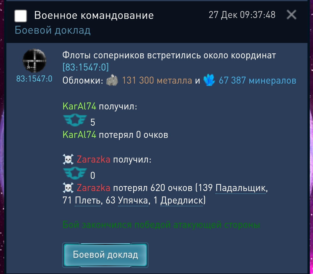 Флот пирата был 620 очков. Но БО начислено только 5 очков