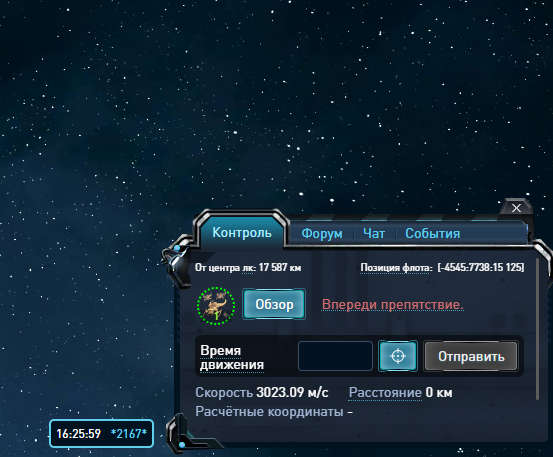 Описание: на координатах находится ОПС игрока со способностью "стелс". Способность «стелс» - это свойство объекта быть невидимым для игроков в меню Галактика и отправке флота (до его обнаружения прямой видимостью). При направлении в полет в локальных координатах бруд три раза натыкался на препятствие. Три раза было препятствие на пути у бруда, при этом в обзоре и галактике объект виден не был.