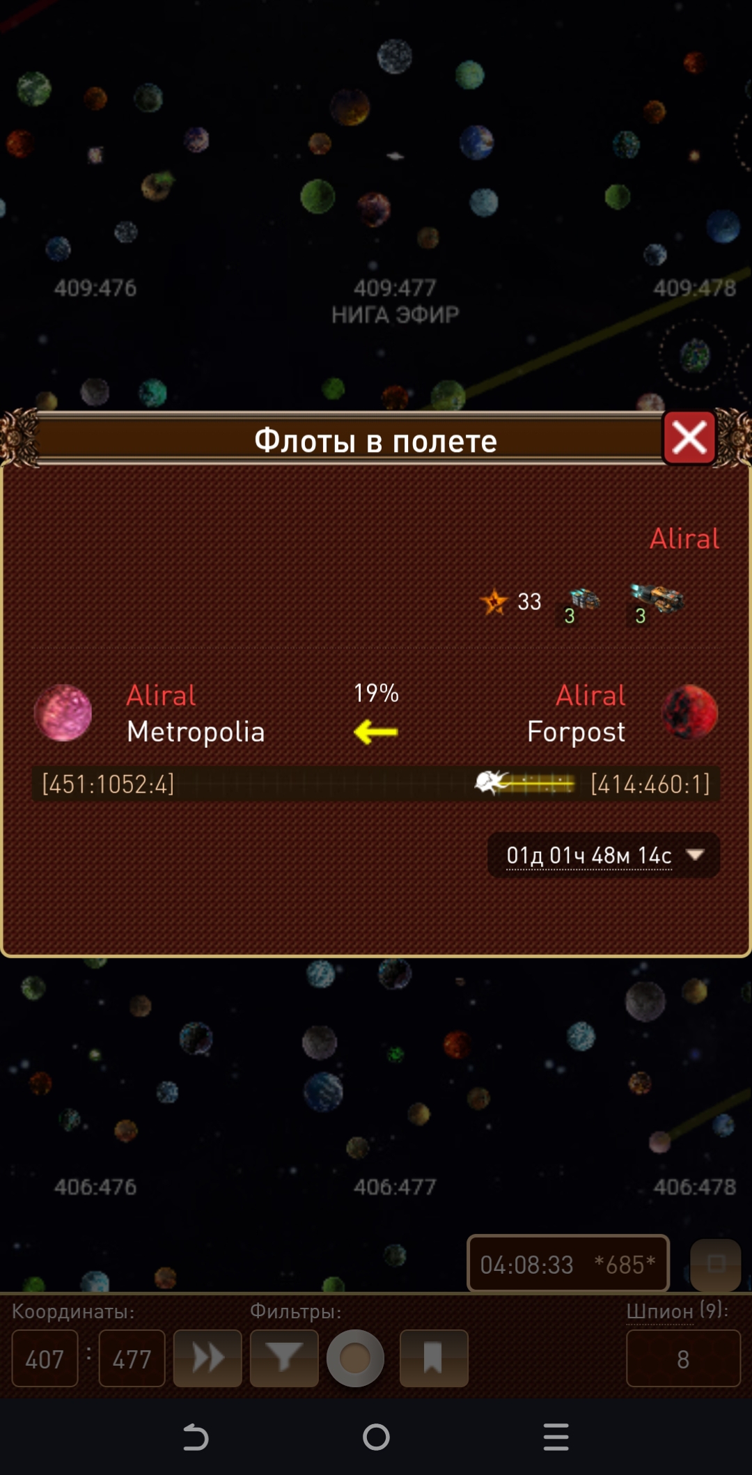+ такая же ерунда, ещё когда пытаешься попасть пальцем в трасер ничего не выходит или совершенно другая информация. Так же выходит такое окно когда нажимаешь на никем не занятые планеты, якобы кто-то летит но нет никого. Баги кривые по всюду
