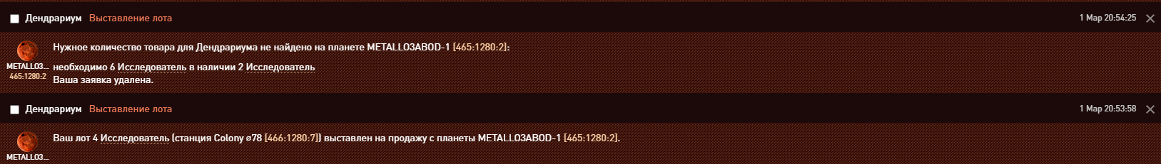 Описание:выставил на продажу 6 имеющихся в наличии иследователей. в отчетах пришло черти что. комисия списана. полетело тока 4 штуки.