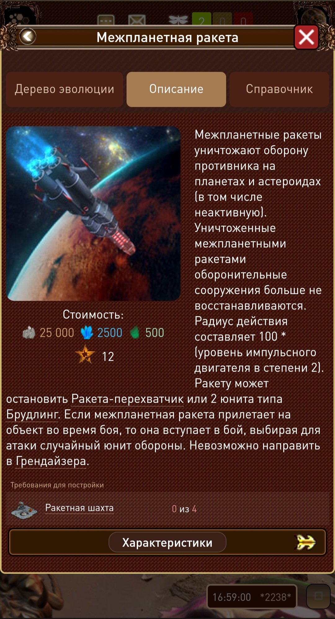 Учитывая, что теперь межпланетные ракеты в бой больше не вводятся, предлагаю исправить описание, в котором они все еще учавствуют в бою