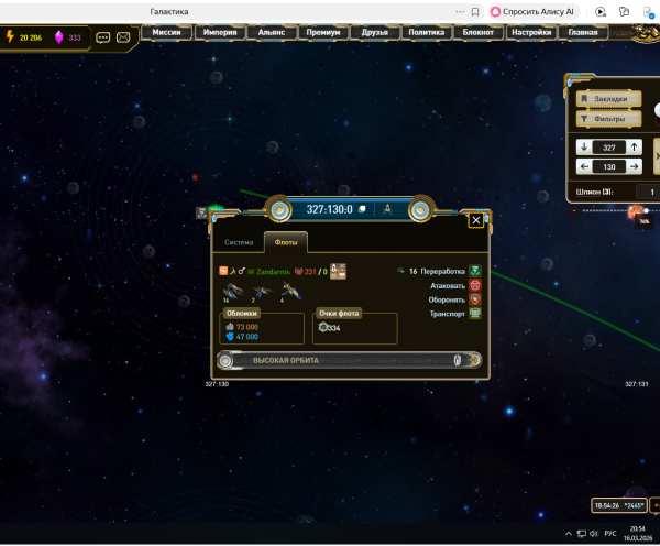 Для нападения на флот на высокой орбите нужно при отправке выбирать этот флот.
