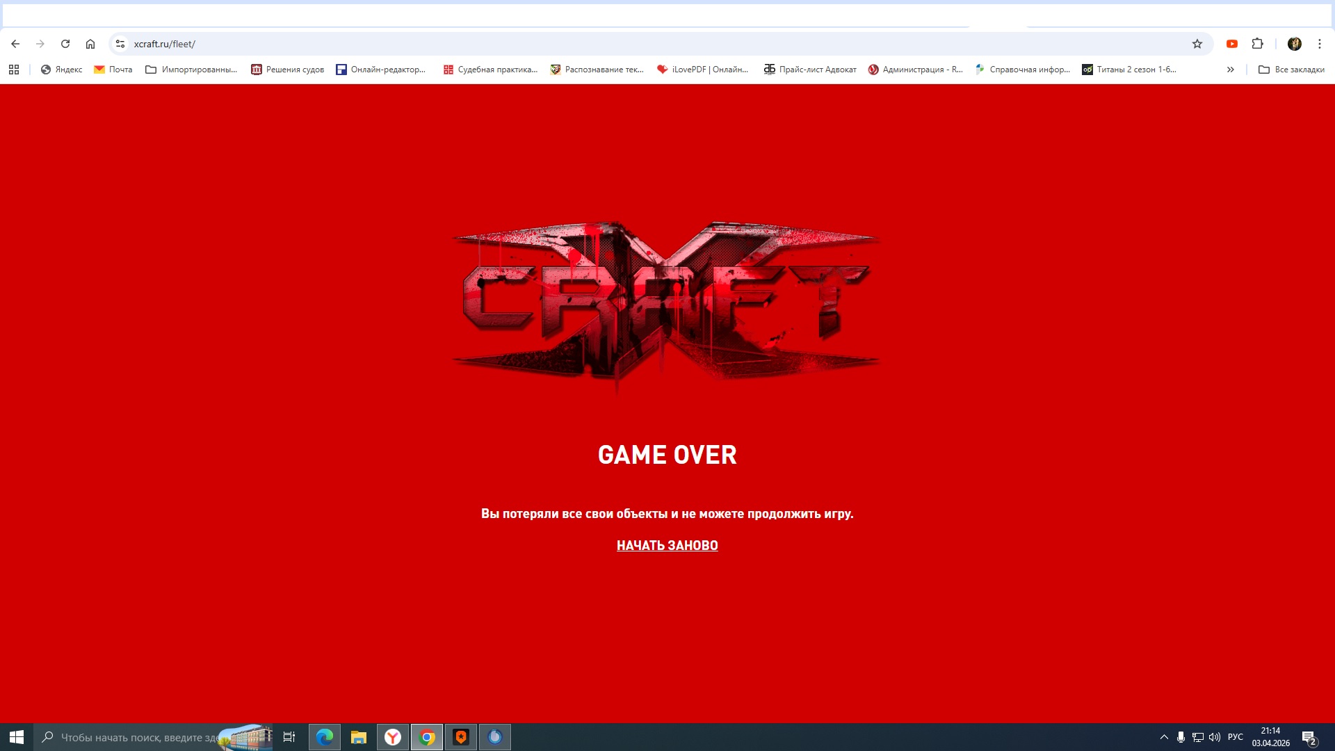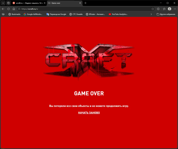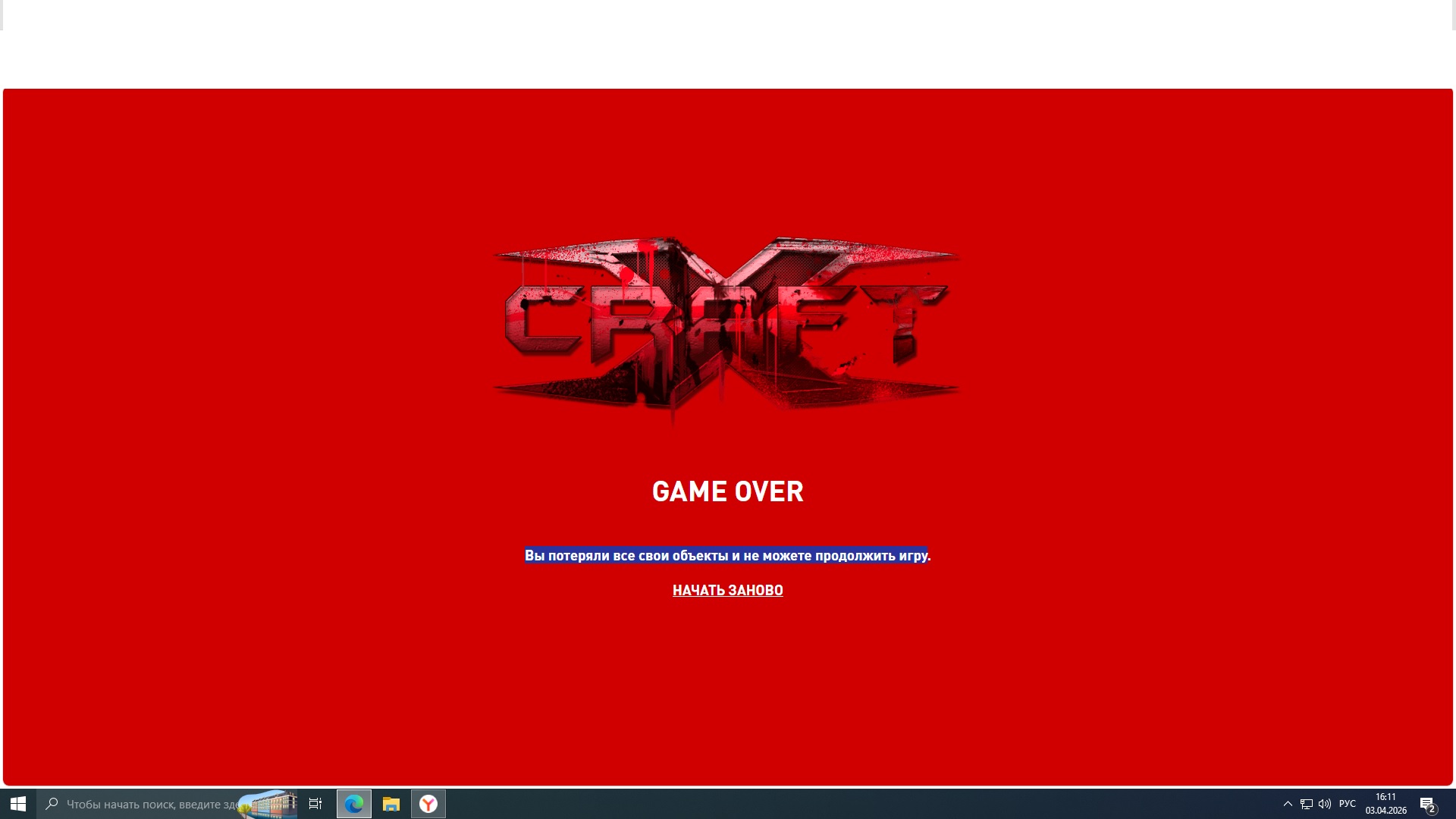 Вы потеряли все свои объекты и не можете продолжить игру.