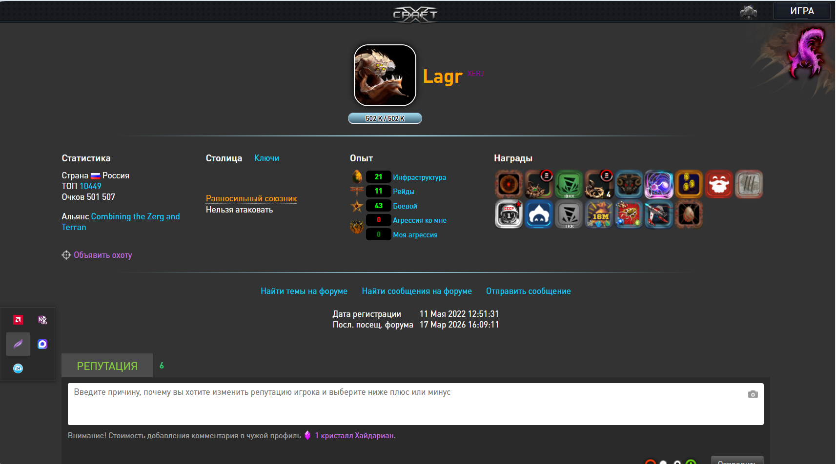 Группа xerj Альянс Combining the Zerg and Terran 21 11 43 Очков 501 507 Сообщений 4