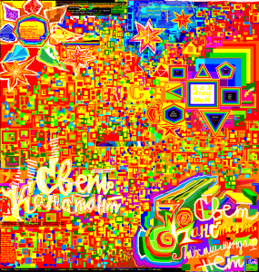 "Картины,што тута видна, эта лиш нибальшой кусочек более бальшых Картин.Но вот для панимания я пакажу,што была использавана в аснове этих тута выставленных картин.Какие пазлы мазаичные .Вот ани : эта первый,