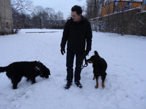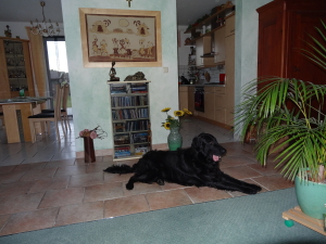 Das ist mein treuer Freund Hugo. Er ist ein Flat Coated Retriever. Rüde, 65 cm Schulter höhe, 37 kg, Einsatzgebiet:Jagthund, Arbeitshund, Rettungshund und Spürhund. Wasser ist seine große Leidenschaft. Hugo liebt als Besonderheit Feuerwerk. Silvester 5 min. vor 0 Uhr will er immer raus. Der Flat Coated Retriever entstand im anfang des 19. Jahrhundert in England und wurde ürsprünglich für engliche Aristokraten gezüchtet. Im 2. Weltkrieg wäre die Rasse fast Ausgestorben.